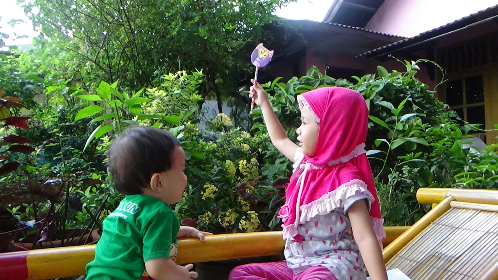 Karena mainannya ada dua, dia bilang, “Ini buat dedek, aku yang burung hantu.” Sudah lagi mainannya ada dua buah yaitu burung hantu berwarna pink dan kelinci abu-abu, jadi bisa dibagi ke adiknya. Sehingga mereka tidak rebutan mainan. Coba kalau isinya cuma satu, pasti deh, mainannya dimainkan sendiri. Biasanya jangankan adiknya memegang mainan, mendekati mainan saja, Erin sudah marah sama adiknya, karena takut diambil mainannya. Hehe.. Sayang, karena membuat mainan setelah pulang sekolah, dia protes capek, sehingga mainan satu lagi dikerjakan esok hari.