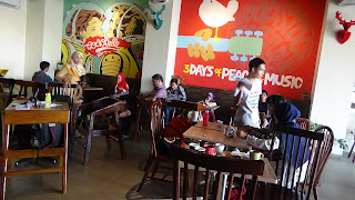 Sembari menunggu makan siang tiba, saya melihat ke sekeliling Kolary Coffee & Kitchen, yang menurut saya taste so good. Bagi yang doyan selfie, Kolary Coffee & Kitchen, juga menyediakan lukisan dinding yang pas banget untuk berfoto. Jadi datang menikmati menu, sambil wefie dan selfie, bisa banget. Keren kan? Ayo deh, jadwalin reunian Moms dengan teman di sini! Tuh lihat dindingnya oke banget buat background foto.
