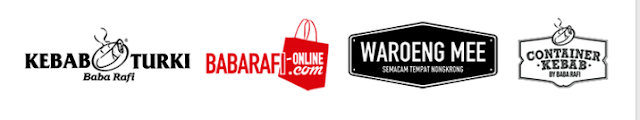 Ada 4 brand dinaungi oleh Kebab Turki Baba Rafi, yaitu  Kebab Turki Baba Rafi, Babarafi-Online.com, Waroeng Mee, dan Container Kebab Cafe by Baba Rafi.